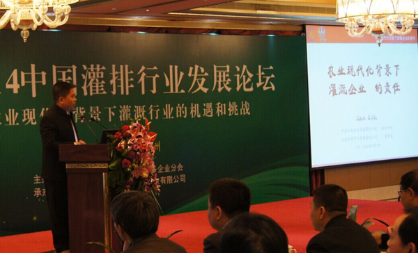 9日上午,2014中國灌排行業發展論壇”隆重召開,許復初秘書長、周榮副秘書長、呂名禮副秘書長等十位嘉賓圍繞“農業現代化背景下灌溉行業的機遇和挑戰”這一主題作了精彩報告。