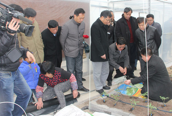 莊木弟區長表示,華維的高效滴灌系統像是給作物“打點滴”,這種技術模式適合復制推廣覆蓋上海乃至全國,并提出溫室大棚栽培可向空間發展,利用此技術將來可實現在城市中心甚至是寫字樓里種菜種花。