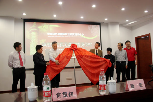 隨后,各位領導共同為中國·以色列國際農業研究培訓中心試驗實習基地揭牌。