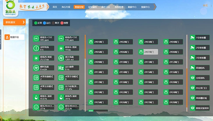 具有自動/手動灌溉模式,支持時序、周循環等灌溉模式;支持按條件(如土壤溫濕度等)自動控制,支持多設備編組,手動或自動切換等功能,支持現場或遠程控制;自動采集溫室內環境數據,包括空氣溫濕度、光照度、二氧化碳、土壤溫濕度、PH、EC等數據;具備灌溉警報及警報響應機制。