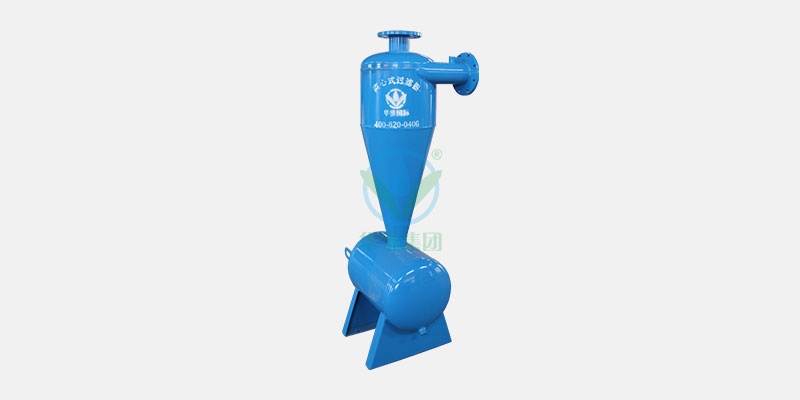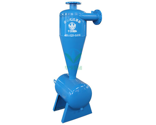 原水從直立的圓錐形罐體的側向(進水管)進水,在水流壓力的作用下做離心運動,推動泥沙及其它密度較高的固體顆粒向管壁移動,形成旋流,比重較大的砂粒落入過濾器底部橫置的沉砂罐、凈水從錐形罐體頂端(出水口)送出,即完成水砂分離。底部沉砂罐須定期進行清理,時間按當地水質情況而定。