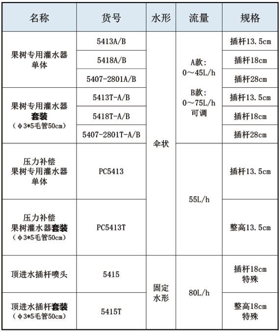 該灌水器具有灌溉精準、灌水量及覆蓋范圍可調(也可以完全關閉)、水形(全圓、傘狀、固定水形)可依據地形及風力等因素選擇,多形態抗風、抗蒸發水霧、抗氧化老化,抗堵塞性能優異、可以結合肥料實現水肥一體化等優點。