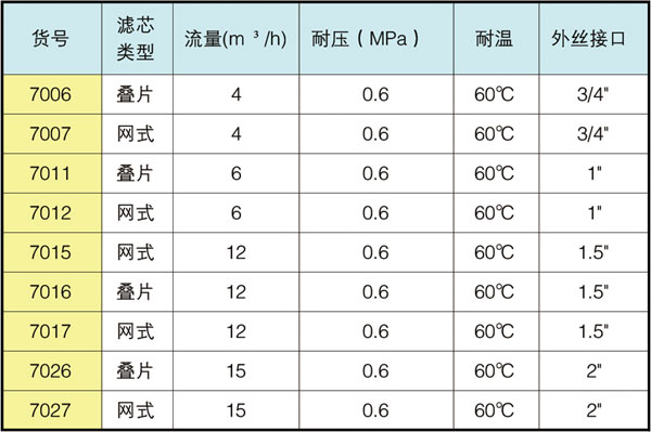 特別加長的濾芯(加大了過濾表面積),如120目的2"單體疊片過流量可達60 m3/h(其他品牌同等規格過流量為50m3/h)。